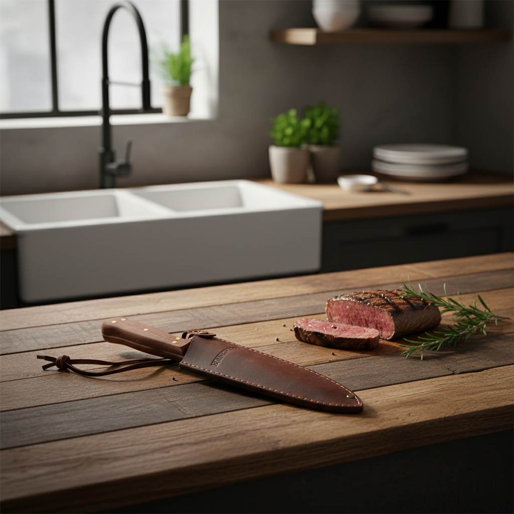 Cuchillo parrillero 8" con funda de cuero | Kangkawe